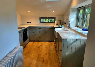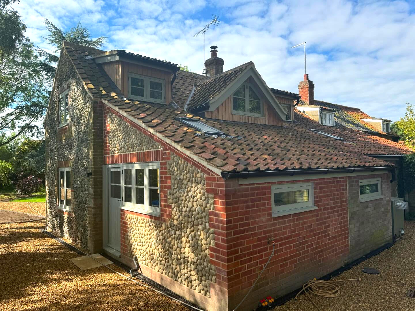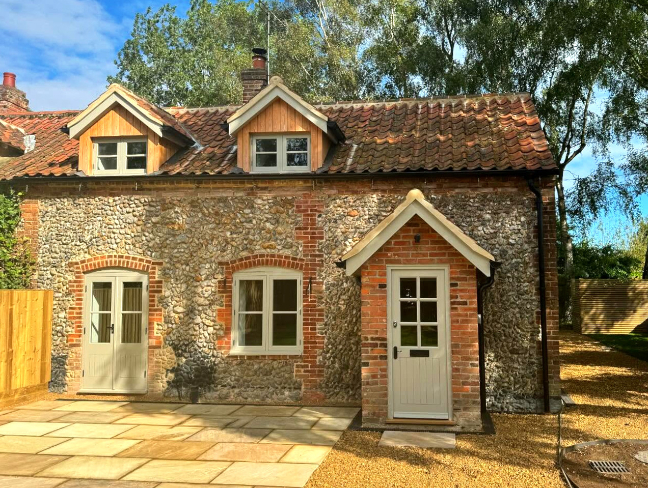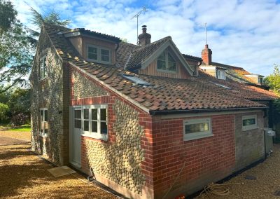 In Sharrington, we renovated a traditional flint cottage, carefully preserving its historic character while updating it for modern living. The interior was completely remodelled to improve flow and functionality, blending old and new with sensitivity. Our team carried out detailed brick and flint work, highlighting the cottage’s original charm with expert craftsmanship.